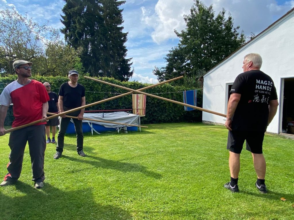 Impressionen aus einer privaten WingTsun Waffenklasse in meinem Garten. Die Kurse finden regelmäßig statt – entweder in der Akademie Kiel oder bei gutem Wetter bei mir im Garten (wie hier zu sehen). Termine findest du in meinem Lehrgangskalender oder über unsere WhatsApp Gruppe.